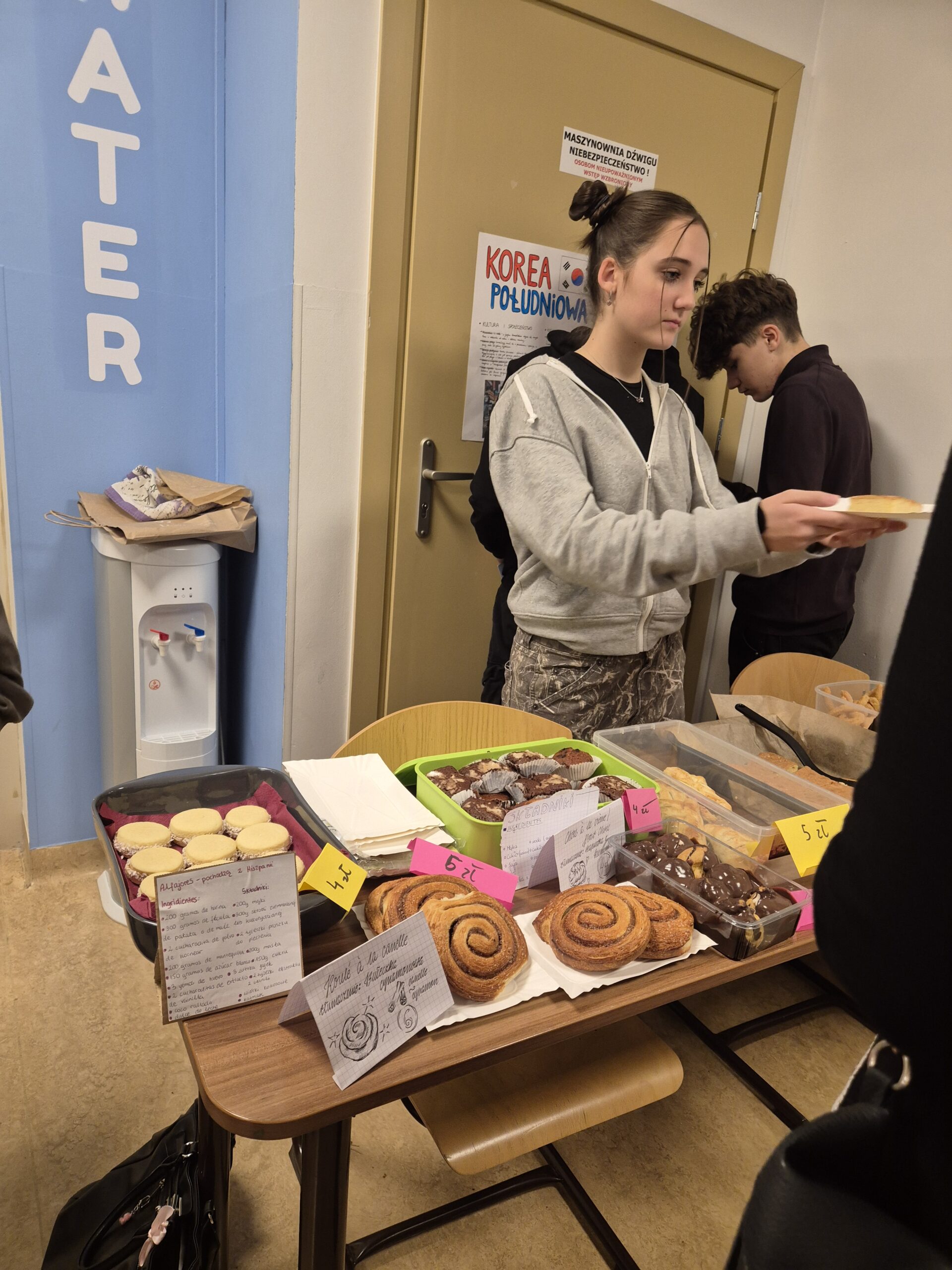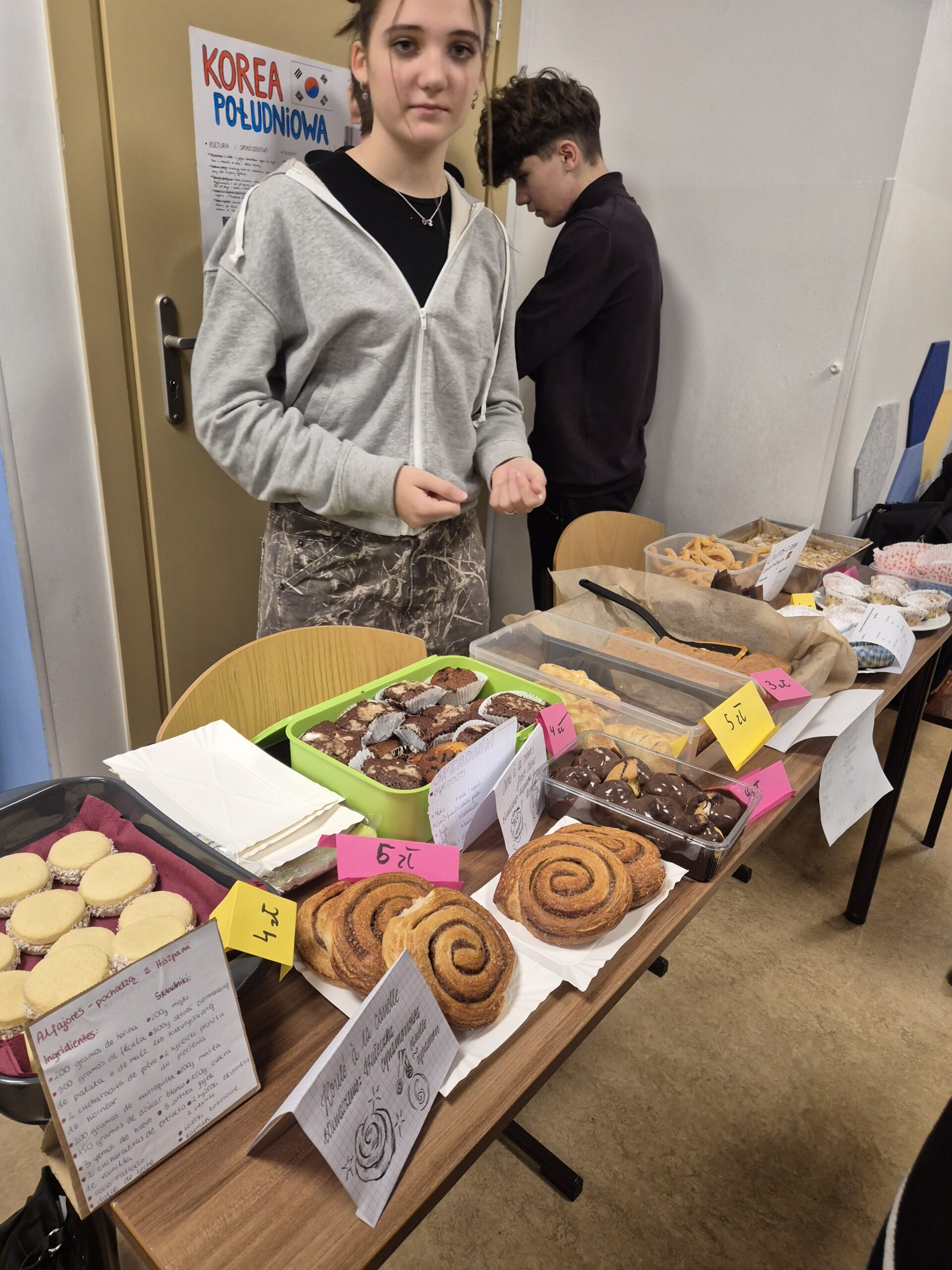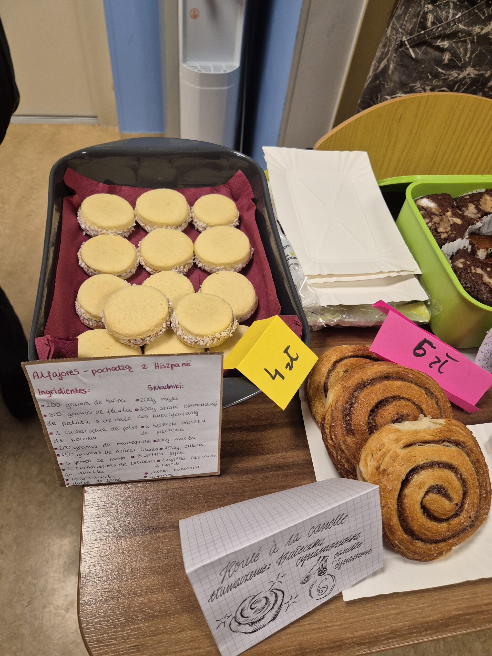 27 października 2025 roku odbyła się kolejna edycja „Dnia Poligloty” – wydarzenia, które pokazuje, że nauka języków obcych może być żywa, praktyczna i bardzo smaczna. W szkole zorganizowano kiermasz potraw z różnych krajów. Uczniowie własnoręcznie przygotowali dania inspirowane kuchniami świata, a przy każdym stanowisku znalazły się opisy składników oraz kraj pochodzenia potrawy, przygotowane w dwóch językach. Dzięki temu można było nie tylko spróbować nowych smaków, lecz także zobaczyć, jak język obcy działa w praktyce, poza podręcznikiem i poza klasą.