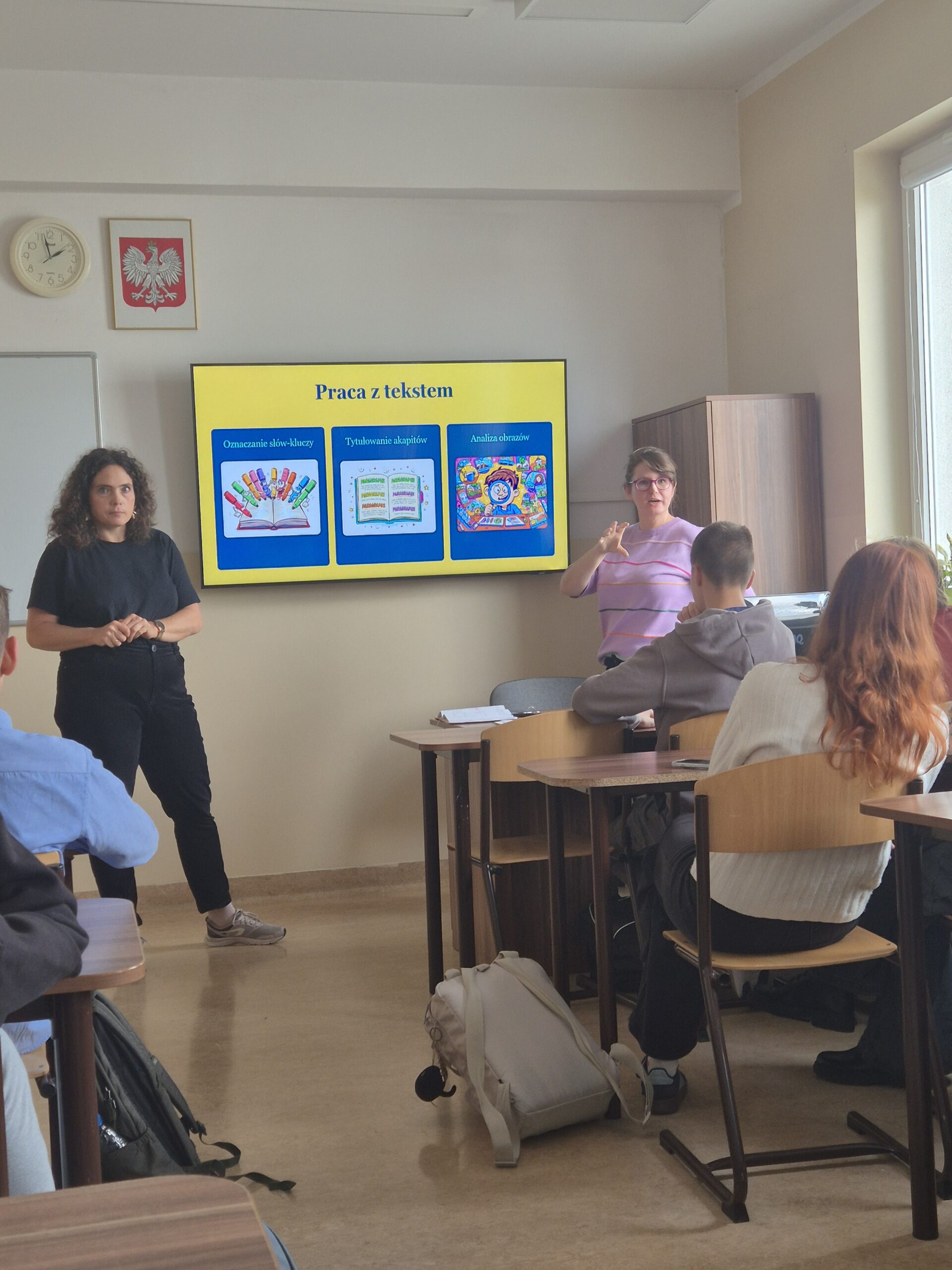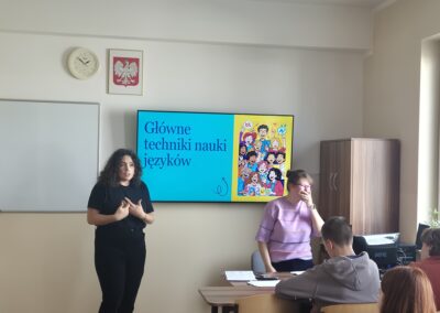 Nauczycielki języków obcych przygotowały również serię wykładów dla uczniów klas pierwszych. Tematem były skuteczne techniki uczenia się języków obcych: jak zapamiętywać słownictwo, jak ćwiczyć wymowę, jak przełamać barierę mówienia.