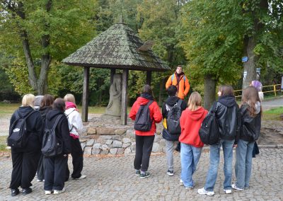 Ostatnim punktem programu były Krzemionki Opatowskie – unikalne neolityczne kopalnie krzemienia pasiastego. Uczniowie zwiedzili zrekonstruowaną prehistoryczną osadę pod przewodnictwem doświadczonej przewodniczki.