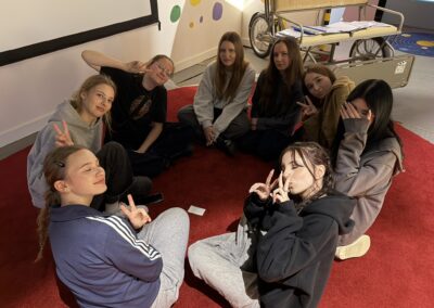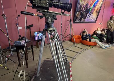Interaktywna wystawa Teatroteka Młodego Człowieka na Planie Filmowym pozwoliła poznać uczniom wszystkie etapy powstawania filmu „od kulis”. W otoczeniu scenografii, rekwizytów i fotosów ze spektakli dowiedzieli się, jakie umiejętności należy posiadać, żeby pracować przy produkcji filmu.