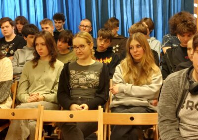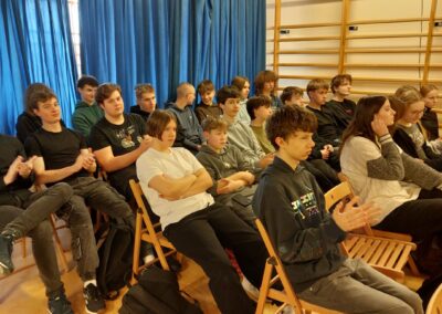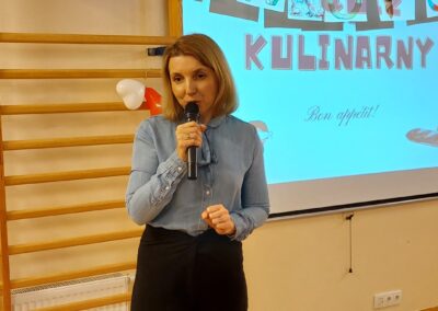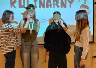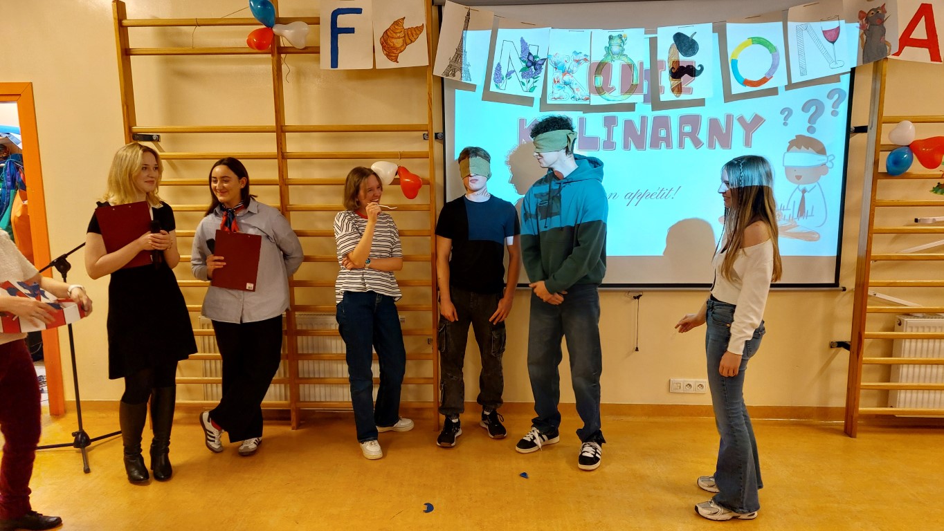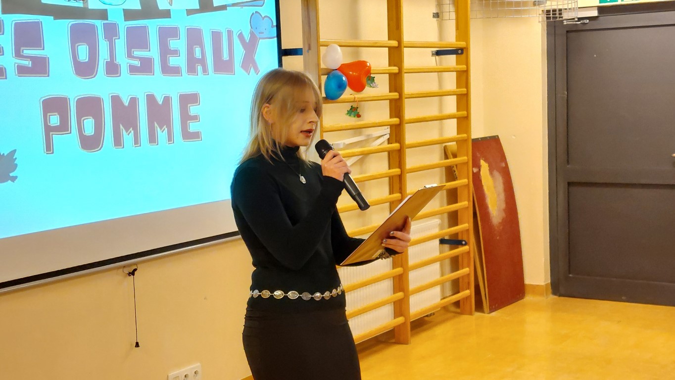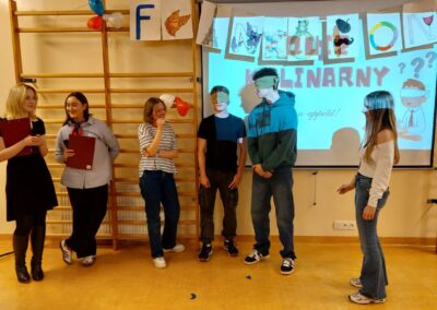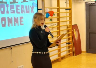 Obchody Dnia Frankofonii w Sobieskim rozpoczęły się od wzruszających akcentów muzycznych. Na początek z nostalgią wysłuchaliśmy nieśmiertelnego utworu Edith Piaf „Milord”, który w mistrzowski sposób zaśpiewała dla nas absolwentka szkoły, Hanna Baranowska. Jej wykonanie wprowadziło nas w atmosferę francuskiej klasyki. Kolejnym punktem programu była subtelna i pełna emocji kompozycja „Les oiseaux” autorstwa młodej francuskiej artystki Pomme, którą z ogromną wrażliwością wykonała Maja Celińska. Następnie obejrzeliśmy niezwykłe wystąpienie Michaliny Kajdzik. Zagrała na skrzypcach wzruszający utwór Yanna Tiersena „L’autre valse d’Amélie”, wprowadzając zebranych w niezapomniany klimat kultowego filmu „Amelia”. W dalszej części obchodów zaprezentowano krótki, lecz pełen pasji film autorstwa absolwentki Sobieskiego, Lei Olszewskiej. W sposób niezwykle przekonujący ukazał, jak istotne jest, by nauka języka francuskiego nie była odkładana na później. Ostatnim artystycznym akcentem był występ Hanny Baranowskiej. Wykonała utwór „Si jamais” w interpretacji Zaz, który na długo zapadł w pamięci słuchaczy. Zwieńczeniem obchodów był quiz kulinarny stanowiący prawdziwe wyzwanie dla podniebień uczestników. Związany z francuską gastronomią, polegał on na rozpoznawaniu tradycyjnych francuskich przysmaków przy zawiązanych oczach.