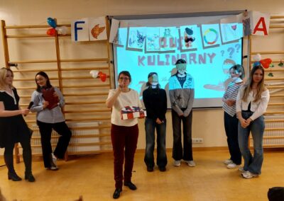 18 marca 2025 w obchodziliśmy Dzień Frankofonii. Uczniowie klas trzecich z oddziału francuskojęzycznego, we współpracy z absolwentami naszej szkoły, przygotowali niezwykle zróżnicowany program, który pozwolił uczestnikom zgłębić zarówno tajniki francuskiego języka, jak i historię oraz współczesne znaczenie tej międzynarodowej wspólnoty. Międzynarodowa Organizacja Frankofonii, choć pierwotnie związana z krajami, w których francuski jest językiem ojczystym, obecnie obejmuje ponad 80 państw na pięciu kontynentach, tworząc globalną sieć osób posługujących się językiem Moliera.