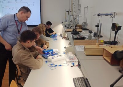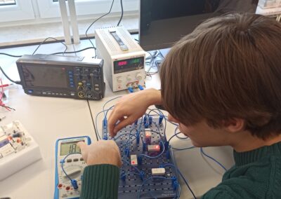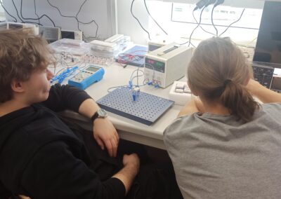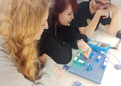 Zajęcia na Politechnice to doskonały sposób na rozwijanie zainteresowań technicznych oraz praktyczne poznawanie zagadnień z zakresu elektryczności, fizyki i inżynierii. To także część szerszego programu współpracy LO Sobieskiego z uczelniami wyższymi, który umożliwia uczniom kontakt z akademickim światem i nowoczesną technologią.