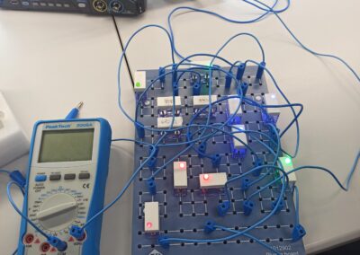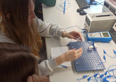 Podczas zajęć młodzież miała okazję samodzielnie przeprowadzać doświadczenia fizyczne, sprawdzając w praktyce prawo Ohma, a także pierwsze i drugie prawo Kirchhoffa. Uczniowie zapoznali się również z działaniem potencjometru i diod w prostych układach elektronicznych.