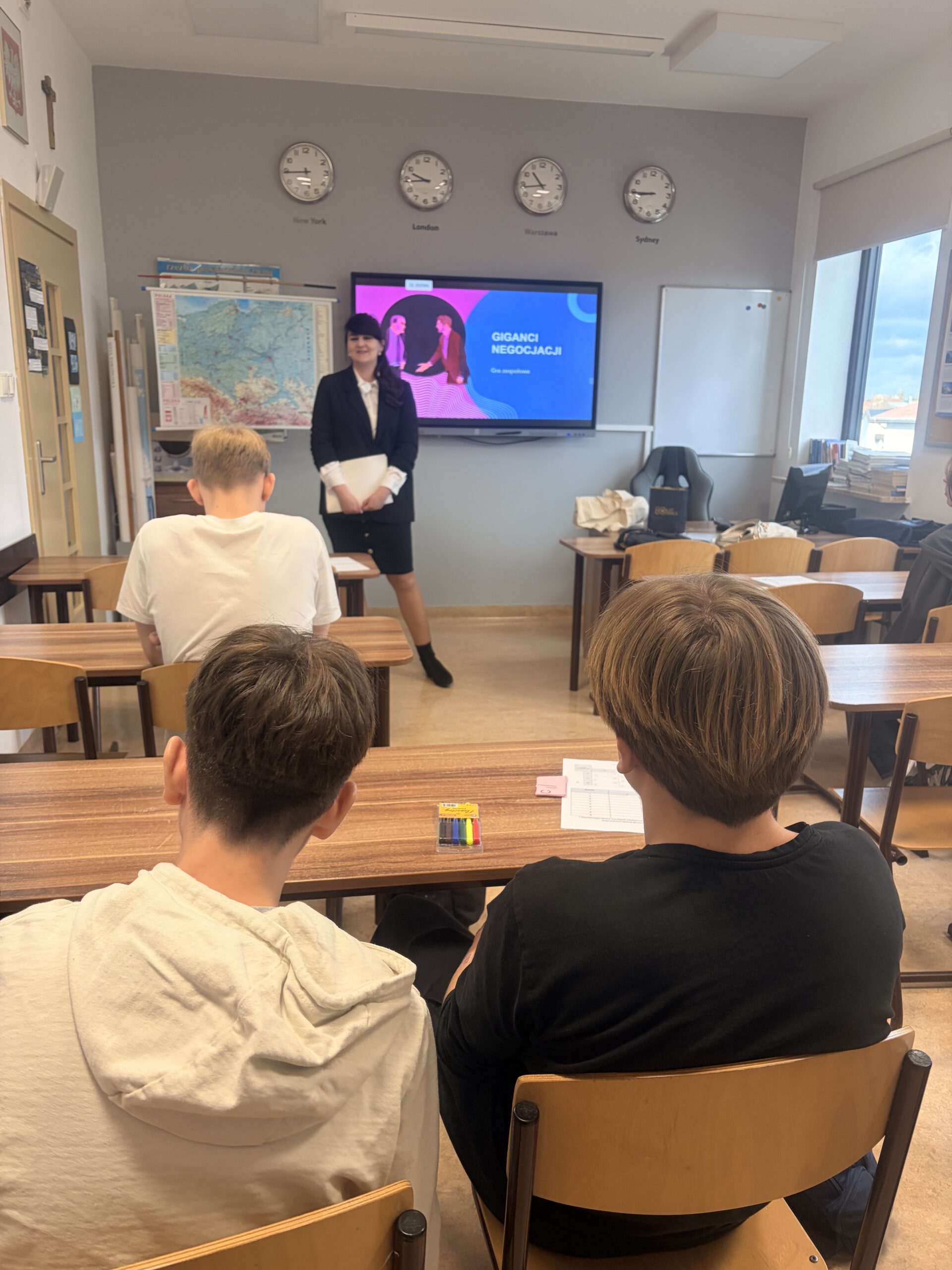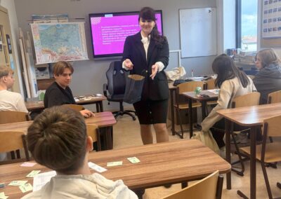 Podczas warsztatów uczniowie wzięli udział w rozgrywkach „Giganci negocjacji”, wcielając się w role negocjatorów na rynku motoryzacyjnym. Cztery drużyny rywalizowały ze sobą, prowadząc intensywne rozmowy i podejmując decyzje wymagające analizy, opanowania oraz sprytu.