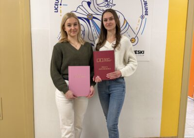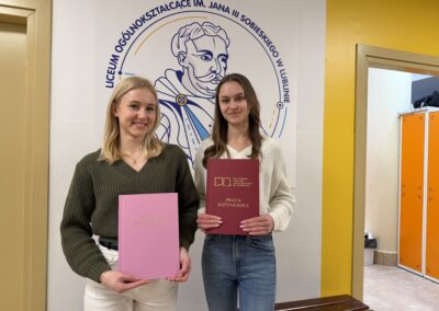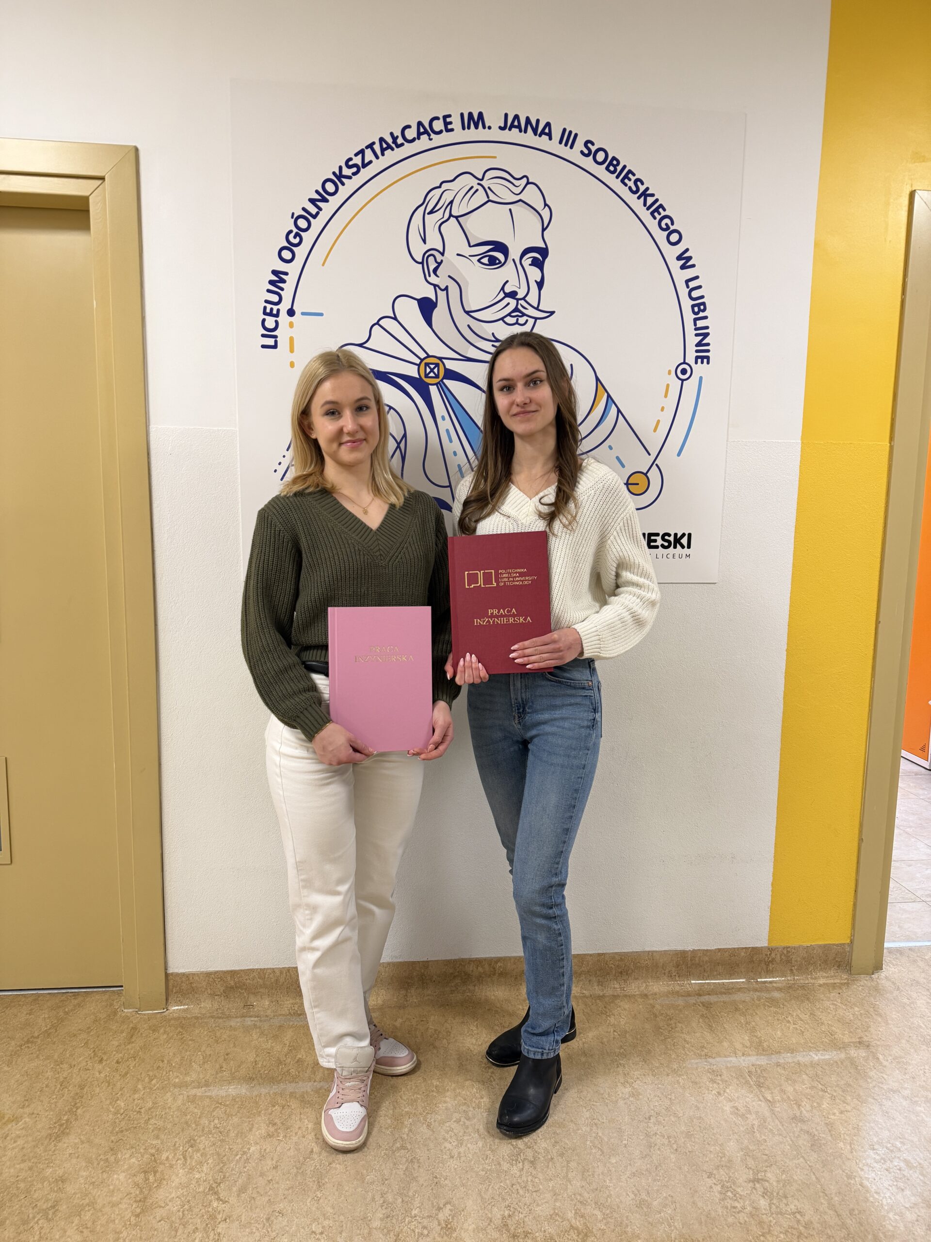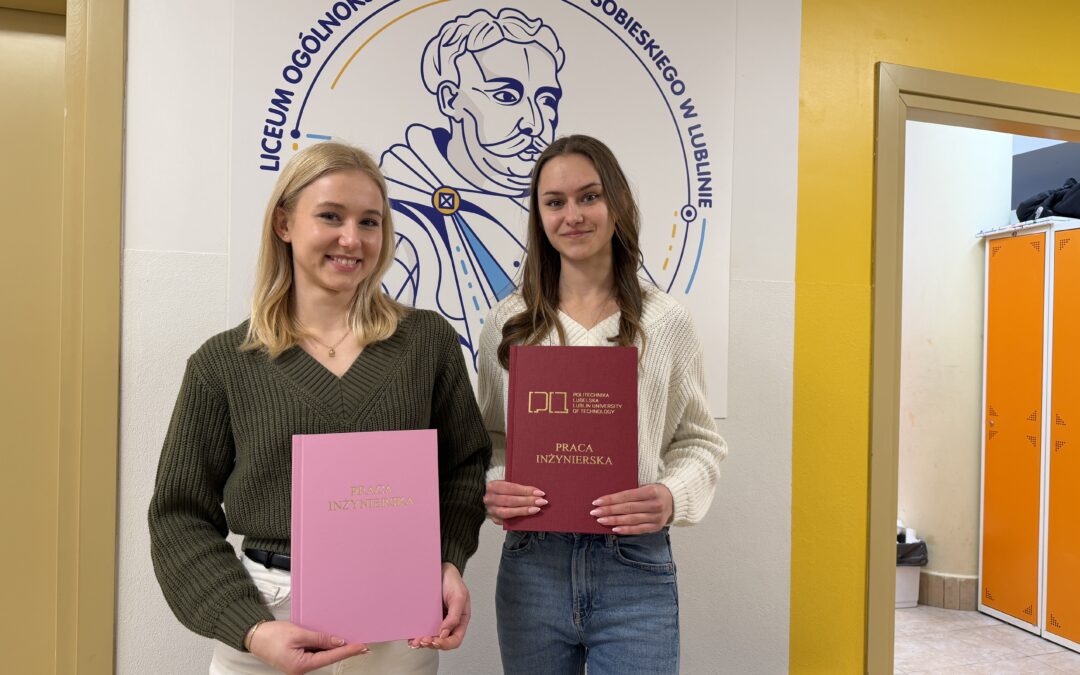 We środę 4 lutego odwiedziły Liceum Sobieskiego nasze dwie absolwentki ( rocznik 2022) Ewa Górska i Dominika Brajerska. Jeszcze niedawno nasze maturzystki , a dzisiaj świeżo upieczone panie inżynier Politechniki Lubelskiej. Ewa obroniła pracę dyplomową inżynierską na kierunku Informatyka w specjalności Inżynieria oprogramowania pod tytułem „ Projekt i wykonanie aplikacji mobilnej dla narciarzy, poprawiającej jakość usług na stoku”. Dominika obroniła prace dyplomową inżynierską na kierunku Inżynieria Logistyki pod tytułem „Projekt automatyzacji procesów logistycznych w wybranym przedsiębiorstwie produkcyjnym”. Oczywiście w planach jest dalszy etap kształcenia – magisterka , Ewa nadal na Politechnice Lubelskiej, a Dominika na Uniwersytecie Przyrodniczym. Jesteśmy bardzo dumni z osiągnięć naszych absolwentek, którym życzymy dalszych sukcesów na ścieżce naukowej i prywatnej.