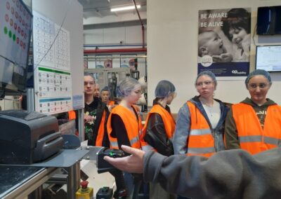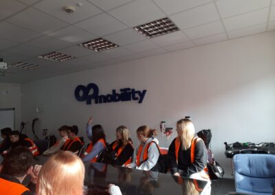 Na początku spotkania pracownicy OPmobility przedstawili charakterystykę firmy – opowiedzieli o jej działalności, produktach oraz roli na rynku. Następnie uczniowie zwiedzili hale produkcyjne, gdzie mogli zobaczyć stanowiska pracy operatorów i z bliska przyjrzeć się procesowi produkcji.