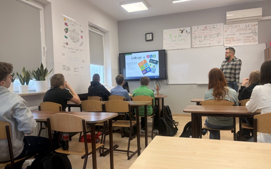 W czwartek 5 lutego gościliśmy w naszej szkole ekspertów Zakładu Ubezpieczeń Społecznych. W ramach działalności edukacyjnej przeprowadzili oni dla uczniów klas 1A, 1CD oraz 2A zajęcia pt. „Lekcje z ZUS”.