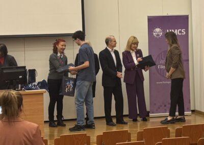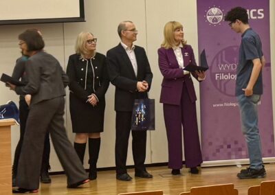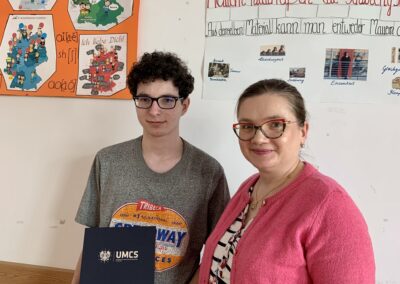 Podczas tegorocznych Dni Otwartych UMCS dnia 9 kwietnia odbyła się uroczystość wręczenia nagród laureatom prestiżowego konkursu językowego „Englisch und Deutsch? Why not?”. Wśród nagrodzonych zwycięzców znalazł się nasz uczeń klasy 2 b Iwo Obrębski, który zdobył główną nagrodę – indeks Katedry Lingwistyki Stosowanej w Lublinie UMSC!