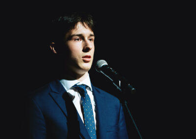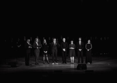 Jednym z najważniejszych punktów programu były występy artystyczne, które wzbogaciły wieczór i podkreśliły kreatywność oraz talent społeczności Sobieskiego. Widzowie mieli okazję wysłuchać wzruszających recytacji wierszy Leopolda Staffa, takich jak „Most” oraz „Odys”, w wykonaniu uczniów Krzysztofa Różyckiego i Natalii Mamej. Fragment „Dziadów” Adama Mickiewicza, odegrany przez Mateusza Goliszka, Jakuba Samborskiego i Leona Siwca, wprowadził atmosferę refleksji i głębi.