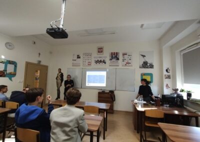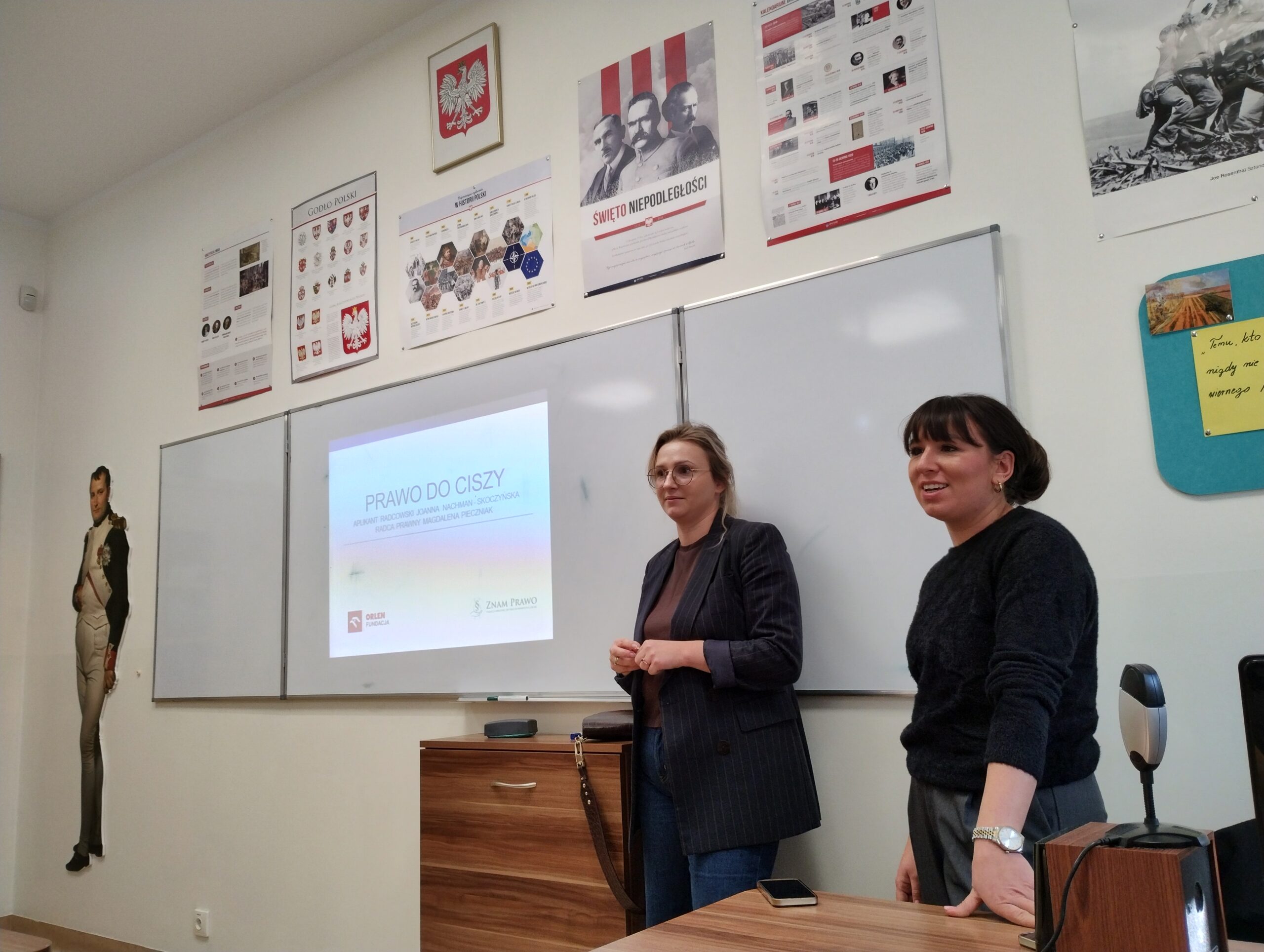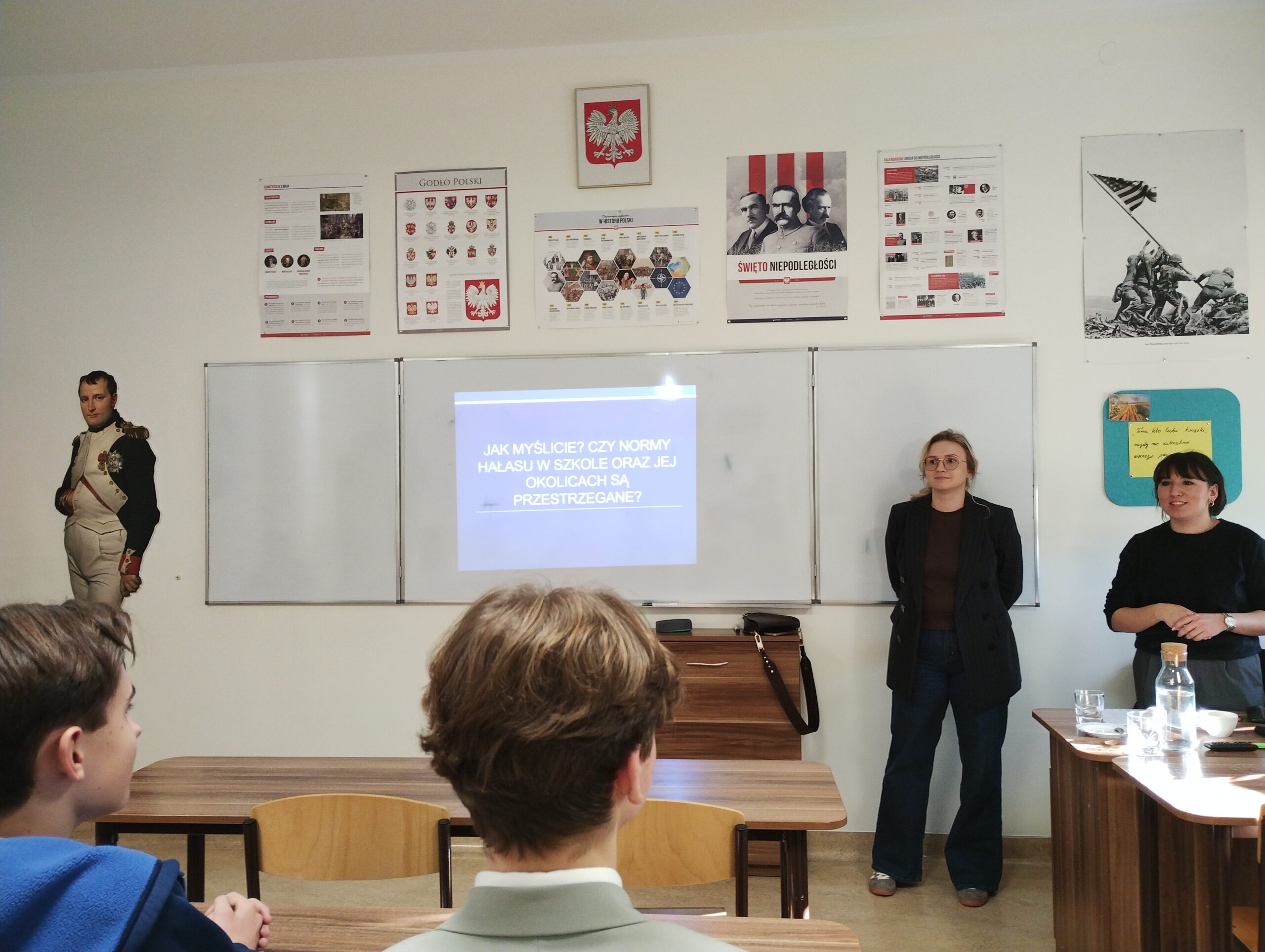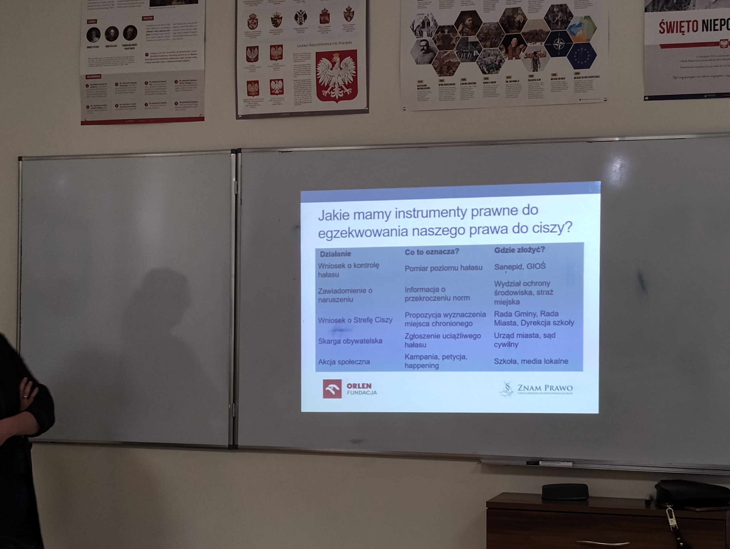 Uczniowie klasy 1d, 2b, 3c  o profilu prawniczym rozpoczęli pracę w ramach projektu “Energia sąsiedztwa – Ekologia z paragrafem” . Projekt jest realizowany we współpracy z Okręgową Izbą Radców Prawnych w Lublinie, która koordynuje działania 6 szkół lubelskich, w tym LO im. Jana III Sobieskiego.  Nasi przyszli prawnicy zajmują się prawem do ciszy czyli przeciwdziałaniem hałasowi w przestrzeni publicznej oraz w przestrzeni szkolnej. Na pierwszym spotkaniu z wolontariuszami OIRP , które odbyło się 31.10.2025r. uczniowie zapoznali się z rozporządzeniami dotyczącymi dopuszczalnych poziomów hałasu w środowisku oraz procedurami związanymi ze zgłaszaniem naruszeń tych norm. Przez najbliższe dwa tygodnie uczniowie muszą zrealizować swoje zadania: zrobić mapę hałasu szkoły oraz stworzyć Kodeks Kultury Akustycznej. Kolejne warsztaty już 27 listopada.