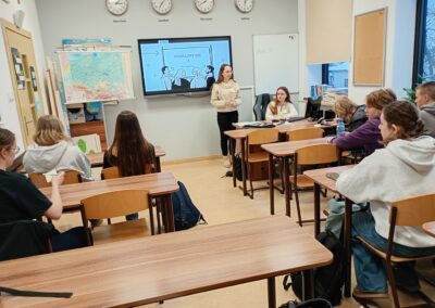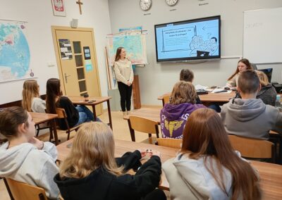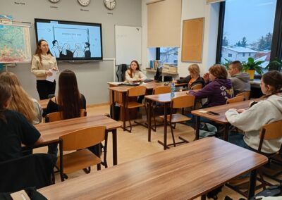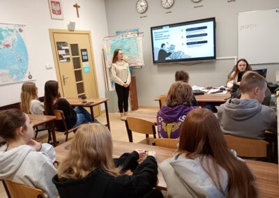 W dniu 25. 11 uczniowie z profilu psychologicznego uczestniczyli w warsztatach: „Słuchanie, które działa. Komunikacja, która łączy”. Podczas spotkania młodzież miała możliwość doświadczyć wpływu komunikacji niewerbalnej oraz przećwiczyć różne umiejętności związane z komunikacją. Spotkanie poprowadziły studentki 4 roku psychologii na KUL.