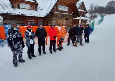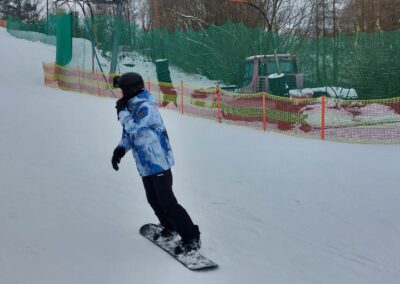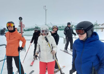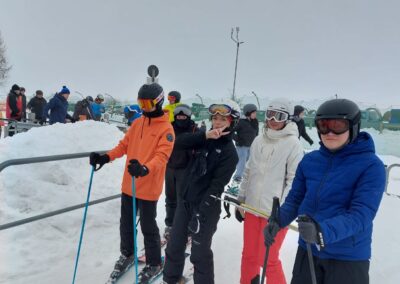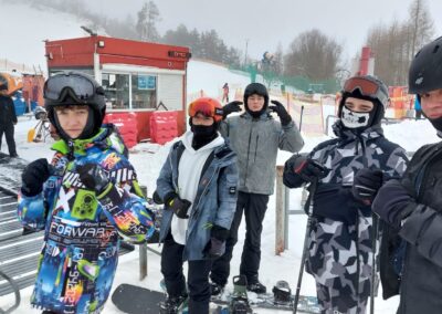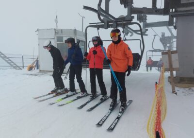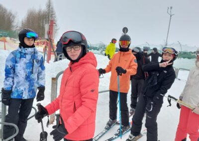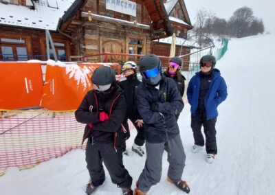 Chrzanów przywitał nas świetnymi warunkami na stoku i pogodą, która sprzyjała narciarskim szaleństwom. Wszyscy, od początkujących po prawdziwych mistrzów nart, znaleźli coś dla siebie – jedni doskonalili technikę, inni podjęli pierwsze próby zjazdów, a niektórzy po prostu cieszyli się zimową atmosferą. Nie zabrakło zabawnych sytuacji, spektakularnych „kontrolowanych upadków” i mnóstwa śmiechu.
