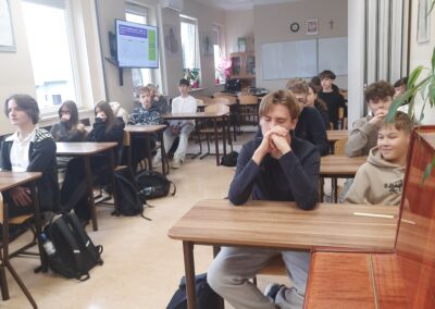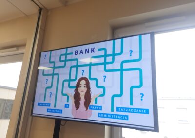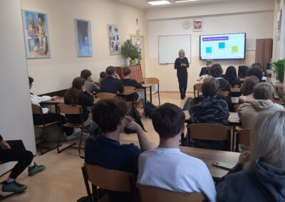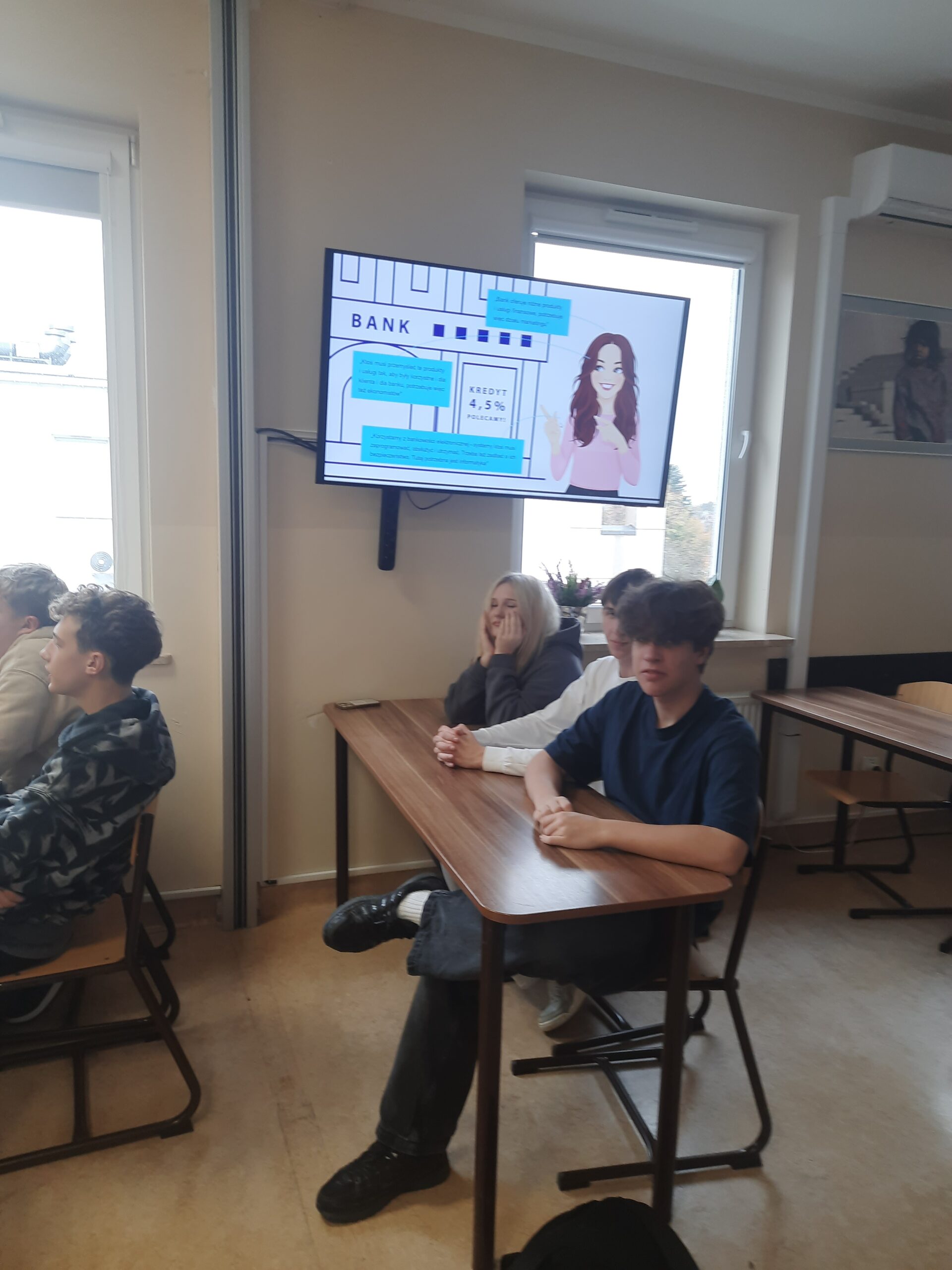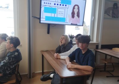 W trakcie spotkania uczniowie poznali zawody związane z szeroko rozumianą bankowością, dowiedzieli się, na czym polega praca w banku oraz jakie kompetencje są w niej szczególnie ważne. Pani Kasia wyjaśniła także trudniejsze pojęcia, takie jak kredyt hipoteczny, RRSO czy marża handlowa, odpowiadając przy tym na pytania uczniów.