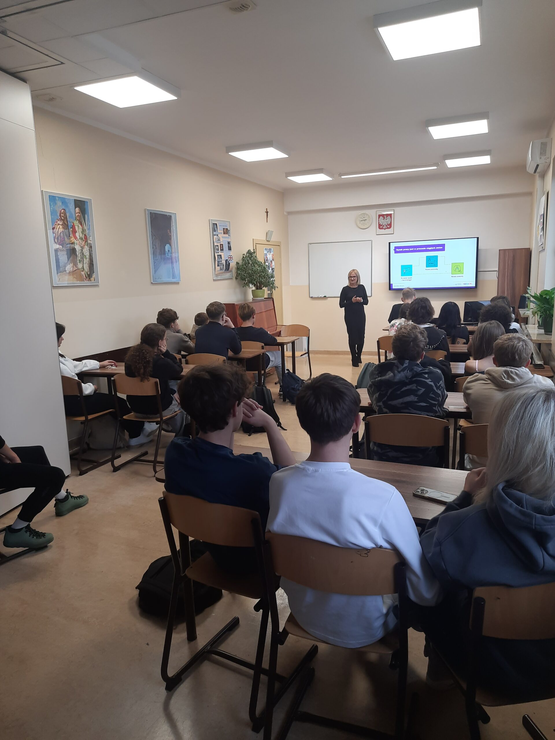 Spotkanie odbyło się w ramach mentoringu biznesowego oraz projektu BAKCYL – Bankowcy dla edukacji, którego celem jest przybliżenie młodzieży świata finansów i bankowości. Pani Katarzyna już po raz kolejny odwiedziła nasze Liceum, dzieląc się swoją wiedzą i doświadczeniem.