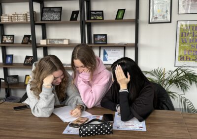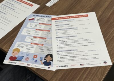 W czasie zajęć licealiści – pracując na tekstach prasowych – rozwijali umiejętności odróżniania faktów od opinii, weryfikowania informacji przy użyciu internetowych źródeł i narzędzi oraz stosowania funkcji wyszukiwarki, przyspieszających odnajdywanie potrzebnych informacji.