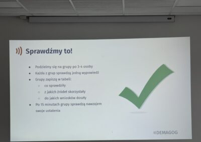 We wtorek 11 lutego uczniowie realizujący zajęcia w ramach profilu medialnego wzięli udział w drugiej części warsztatów, prowadzanych przez Stowarzyszenie Demagog, które 4jest pierwszą w Polsce organizacją fact-checkingową.