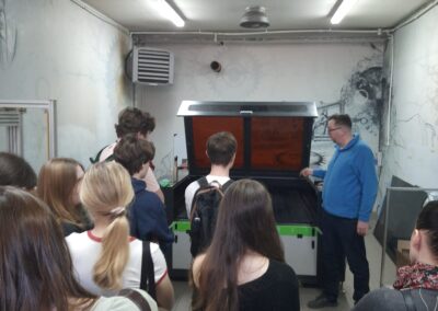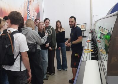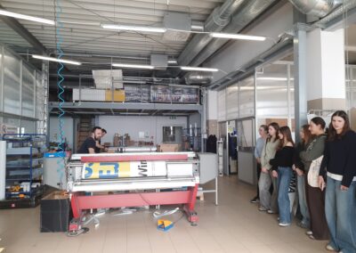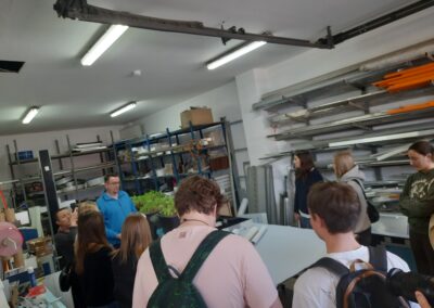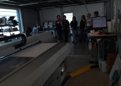 Podczas wizyty mieliśmy możliwość zwiedzenia firmy i zapoznania się z jej działalnością. Poznaliśmy specyfikę pracy grafika, zobaczyliśmy przykłady jego projektów oraz dowiedzieliśmy się, jak wygląda proces tworzenia materiałów reklamowych. Mieliśmy również okazję obejrzeć maszyny drukujące wielkoformatowe oraz zapoznać się z funkcjonowaniem różnych działów firmy.