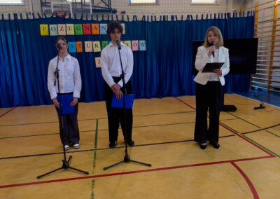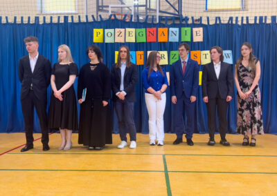 Szczególne podziękowania kierujemy do wychowawców klas III – pana Lecha Remiszewskiego, pani Moniki Wójcik oraz pani Ireny Babkiewicz – oraz do ich wychowanków, którzy z zaangażowaniem i sercem przygotowali część artystyczną. Dzięki nim uroczystość nabrała osobistego, wzruszającego charakteru i pozostawiła piękne wspomnienia.