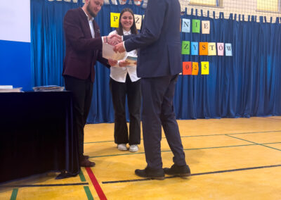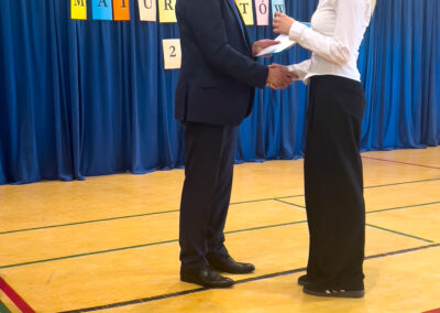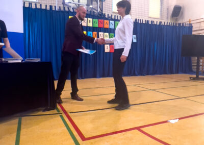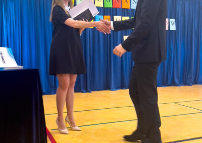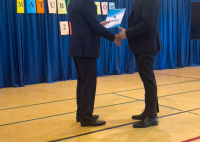 W trakcie wydarzenia wyróżniono uczniów za wybitne osiągnięcia. Najwyższą średnią ocen z czterech lat nauki – 5,70 – uzyskała Małgorzata Haczewska. Za swoje imponujące wyniki otrzymała pamiątkowy zegarek ufundowany przez właściciela szkoły Jacka Burego oraz Bogdana Burego. Uhonorowano także uczniów, którzy zdobyli prestiżowe certyfikaty językowe Cambridge English Qualifications na poziomie C1 i C2, potwierdzające ich zaawansowaną znajomość języka angielskiego i ogromne zaangażowanie w naukę.